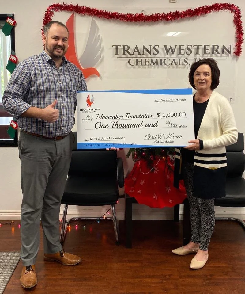 Trans Western Chemicals donated $1,000 to the Movember Foundation helping fund ground breaking work in prostate cancer, testicular cancer, mental health, and suicide prevention. Both John Kirsch and Mike Cook participated by growing out their mustache’s. We were happy to have two of our own working for such a worthy cause.